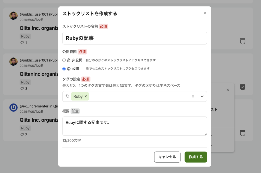 この新しいUIから、タグや概要を設定した公開ストックリストを直接作成できるようになり、ストックリストの作成がさらに手軽になりました。